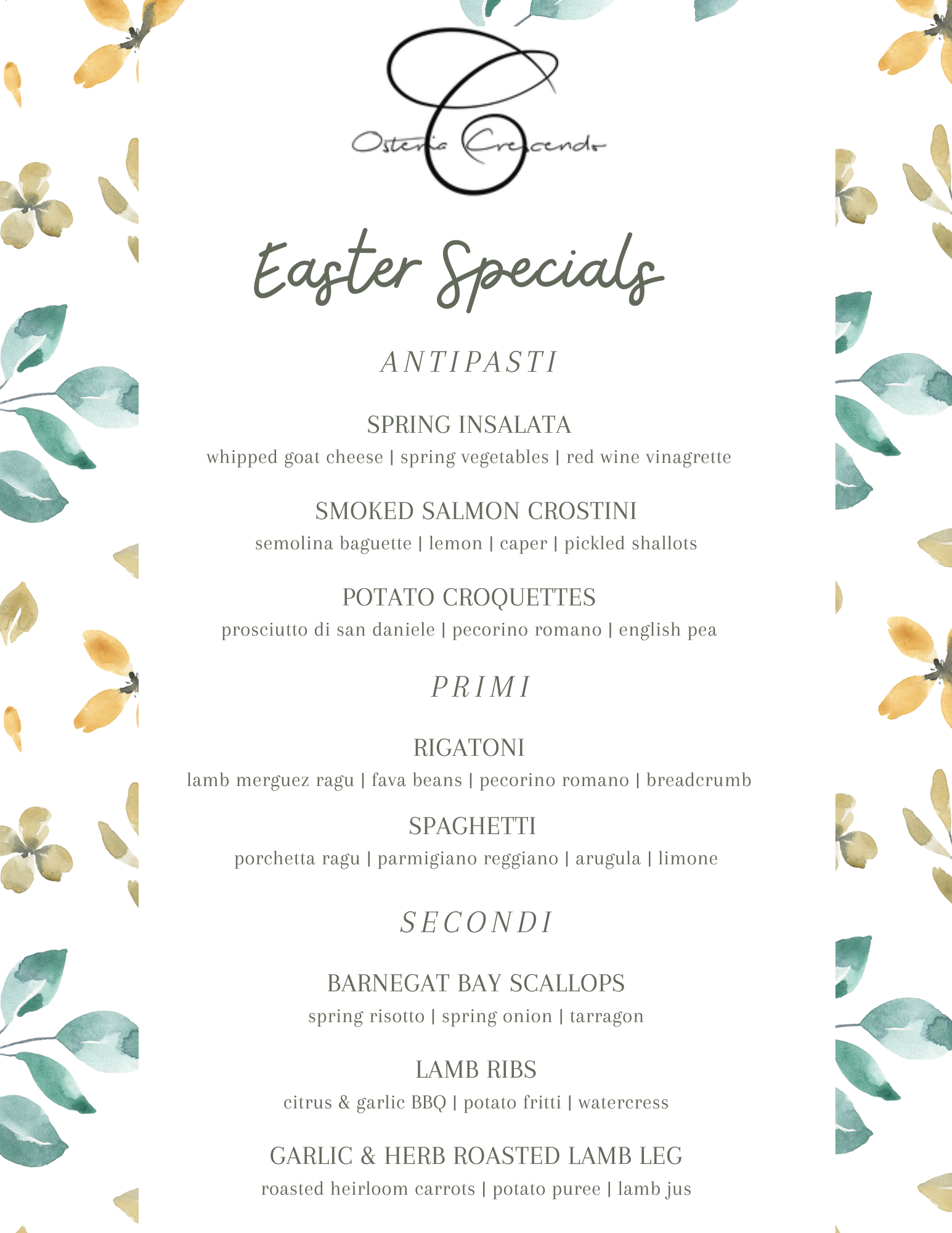 Join us as we will be open Easter Sunday offering our al a carte-menu