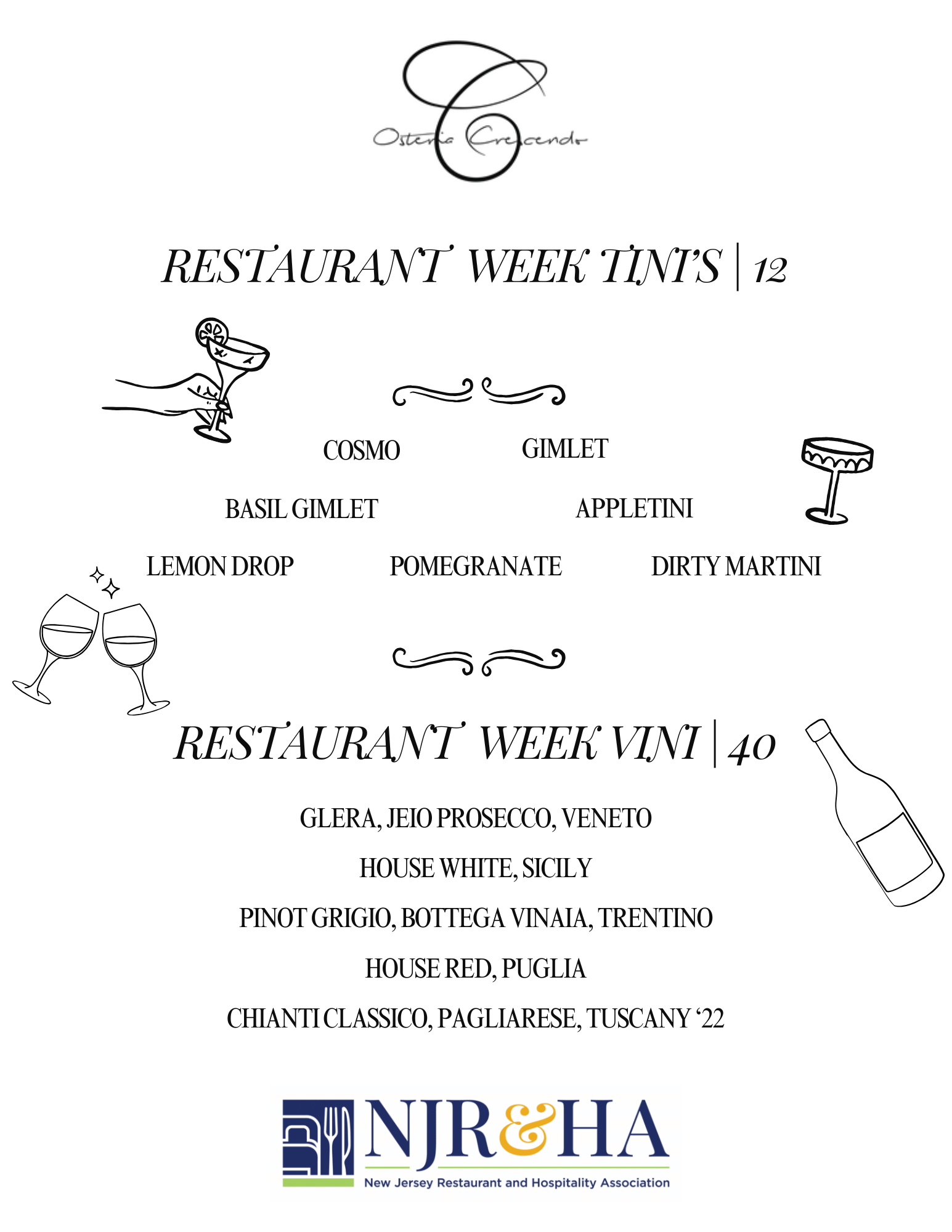 From October 17– October 23, Osteria Crescendo is proud to be part of NJ Restaurant Week!