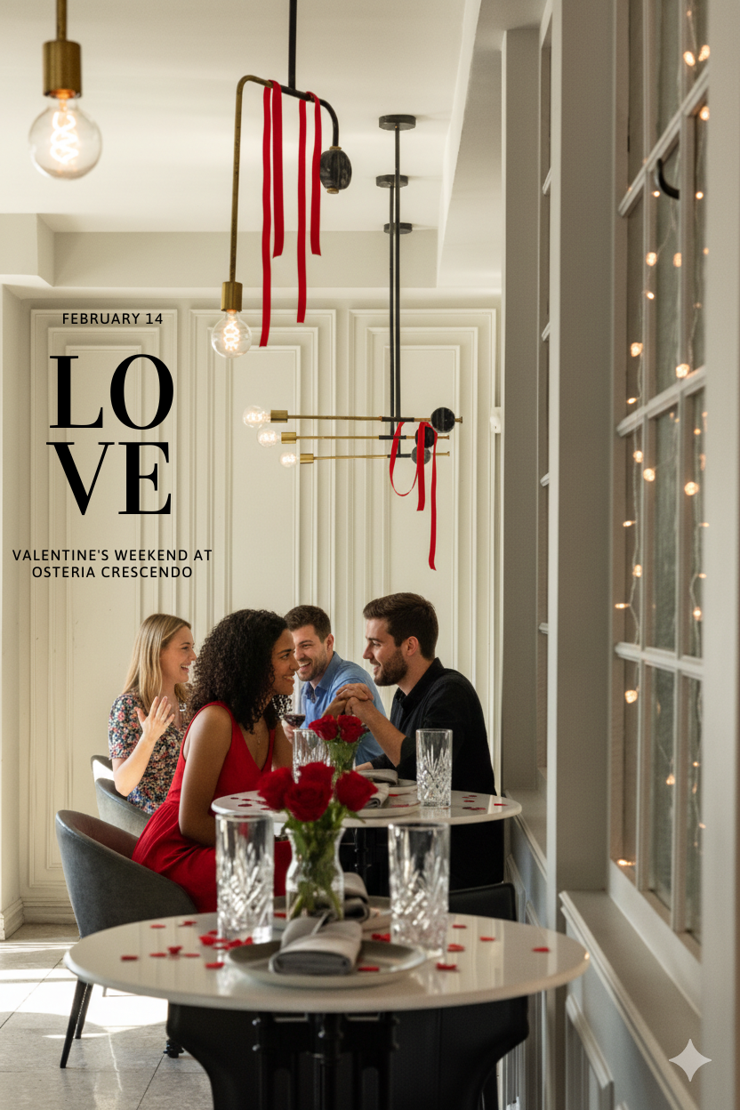 Celebrate love all weekend long at Osteria Crescendo with our Valentine’s Day Weekend